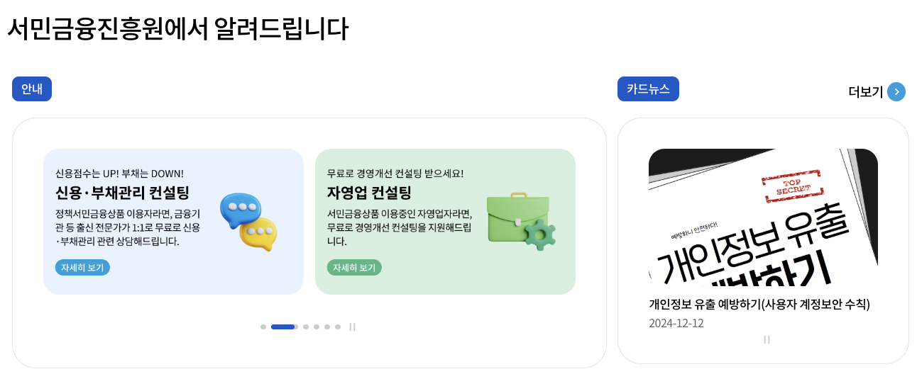 서민금융진흥원 홈페이지 또는 앱 접속