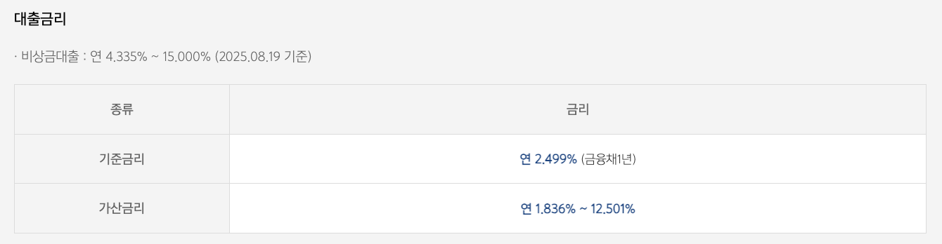 - 금리: 연 5%대 ~ 15%대 (개인 신용도에 따라 차등 적용)