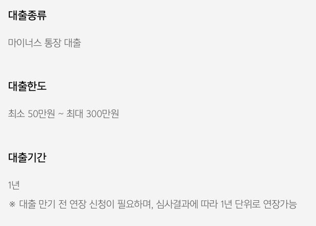 - 상품 형태: 모바일 소액 마이너스통장 대출